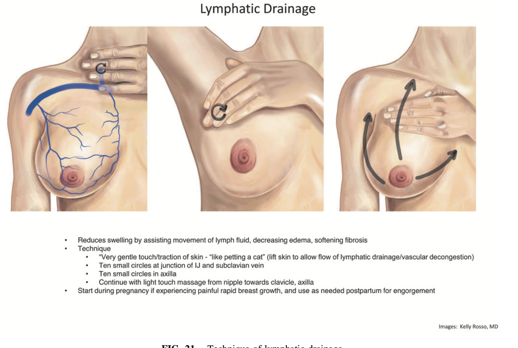 This technique supports fluid movement and reduces swelling—similar to postpartum swelling in other parts of the body.